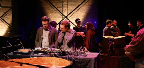 Delight in a drink and a snack, meet festival musicians, and go behind-the-scenes with Pedram Baldari and Matthew Rahaim as they install their Resonant Transmutations concert.