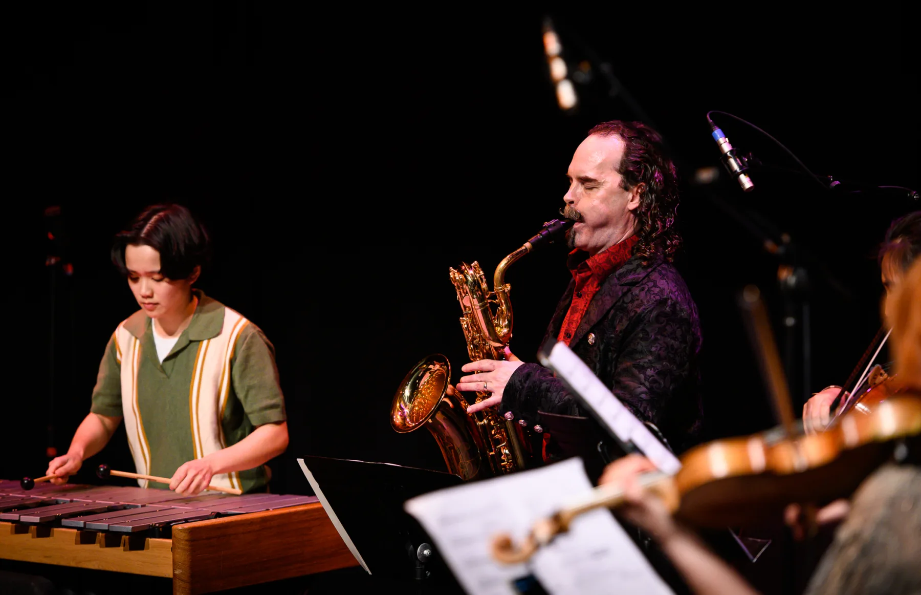 Mark Takeshi McGregor, flute; Paolo Bortolussi, flute; AK Coope, clarinet; Colin MacDonald, saxophone; Lan Tung, erhu; Sarah Kwok, viola; Adrian Verdejo, electric guitar; Dailin Hsieh, zheng; Allen Stiles, piano; Nicole Linaksita, piano; Julia Chien, vibraphone; Gael Chabot Leclerc, marimba; SJ Kirsch, soprano; Matthew Rahaim, jiwan; Cherolyn Kay Fischer, woodwind; Nathan Hanson, woodwind.